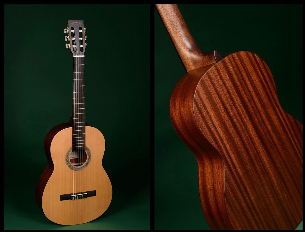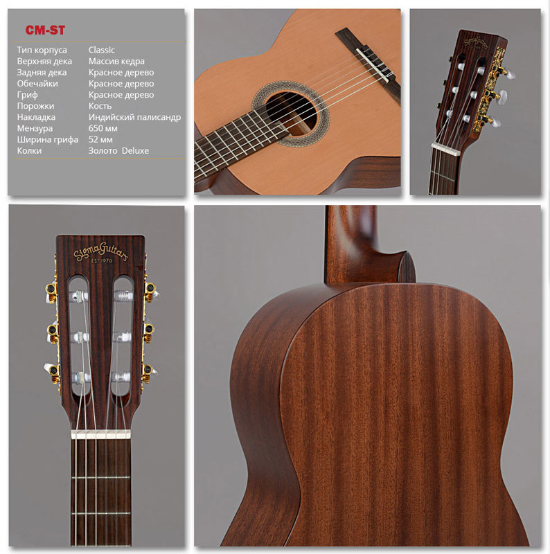 Несмотря на то что гитары фирмы Sigma, к сожалению, не столь популярны в среде классических гитаристов (многих почему-то отталкивает китайская сборка) - я бы всем рекомендовал обратить внимание на эту модель т.к. в представленной ценовой категории эта модель предполагает множество преимуществ. Во-первых, это шикарный богатый звук, который дают сочетание массива кедра у передний деки и красное дерево корпуса, во-вторых, нижний и верхний порожки изготовлены из натурального кости, что придаёт звучанию больше отдачи, и, в-третьих, очень удобный профиль грифа.