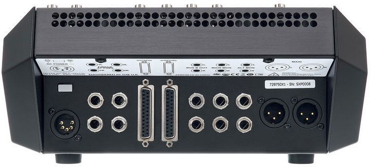 Контроллеры включают пять 100-миллиметровых фейдеров, комплекты регуляторов и кнопок управления. Поддерживается интеграция с рабочими станциями. Предусмотрены режимы Alternate и Talkback для дополнительных входов и выходов. Коммутационные возможности: два микрофонных входа XLR и два инструментальных входа TRS, вход Talkback XLR, выход для наушников, четыре разъема возврата, восемь входов TRS, два разъема DB25, два выхода XLR и шесть выходов TRS.