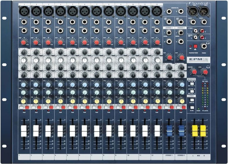 Soundcraft EPM12 микш.пульт, 12 mono + 2 stereo, 2 aux, 60мм фейдер