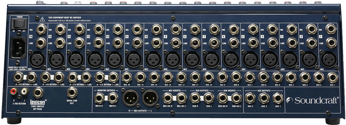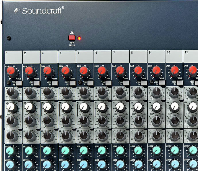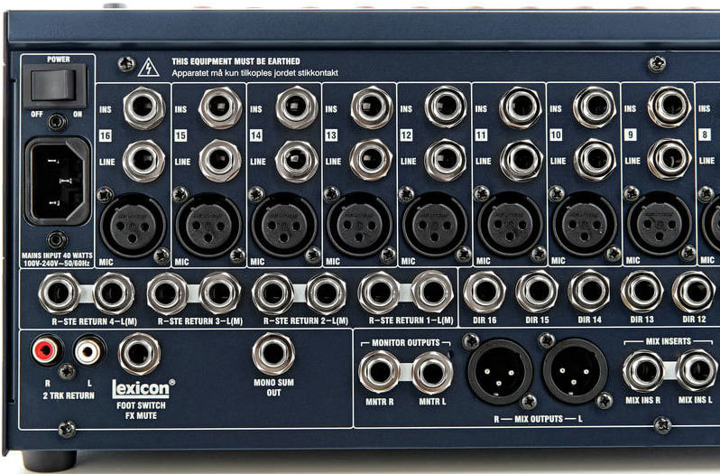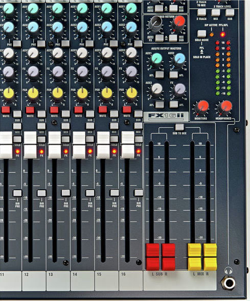 Всего в микшерном пульте FX16ii 26 каналов, из них 16 моно каналов, каждый оснащен микрофонным XLR/¼ входом, выходом Direct для многоканальной записи, и регулятором уровня сигнала (от +5 дБ до +60 дБ).