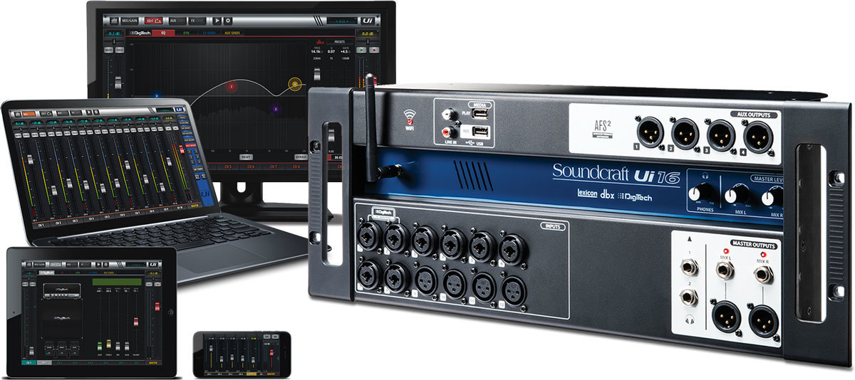 Soundcraft Ui16, беспроводной цифровой микшер, 16 входов, беспроводное управление, встроенные процессоры dbx, Digitech, Lexicon