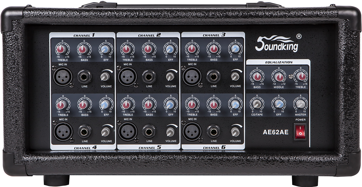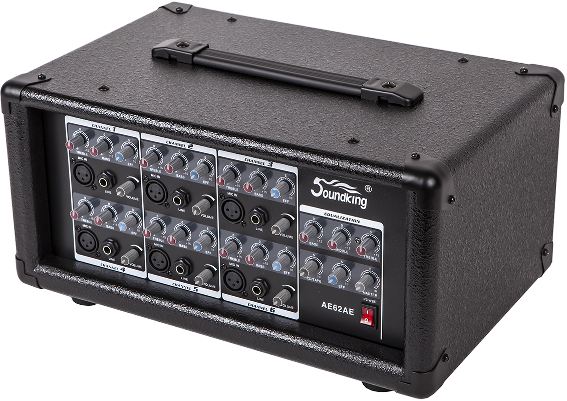 Микшерный пульт имеет 6 входных каналов (XLR/1/4" Jack) и встроенный процессор эффектов с 16-ю пресетами. Так же на каждом канале имеется двухполосная эквализация, посыл на обработку и ручка регулировки канала.