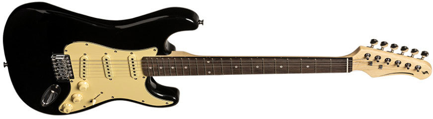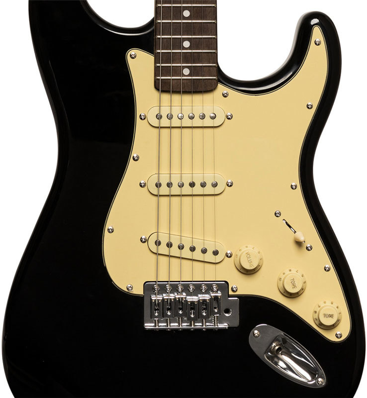 STAGG SES-30 – шестиструнная винтажная электрогитара серии «S» в корпусе типа «стратокастер» в красивой глянцевой черной отделке. Ее корпус целиком выполнен из массива павловнии. Гриф на болтовом креплении с легким доступом к последним ладам обладает матовой отделкой и сделан из клёна с накладкой из палисандра. У гитары 22 лада, маркеры ладов выполнены в виде белых точек.