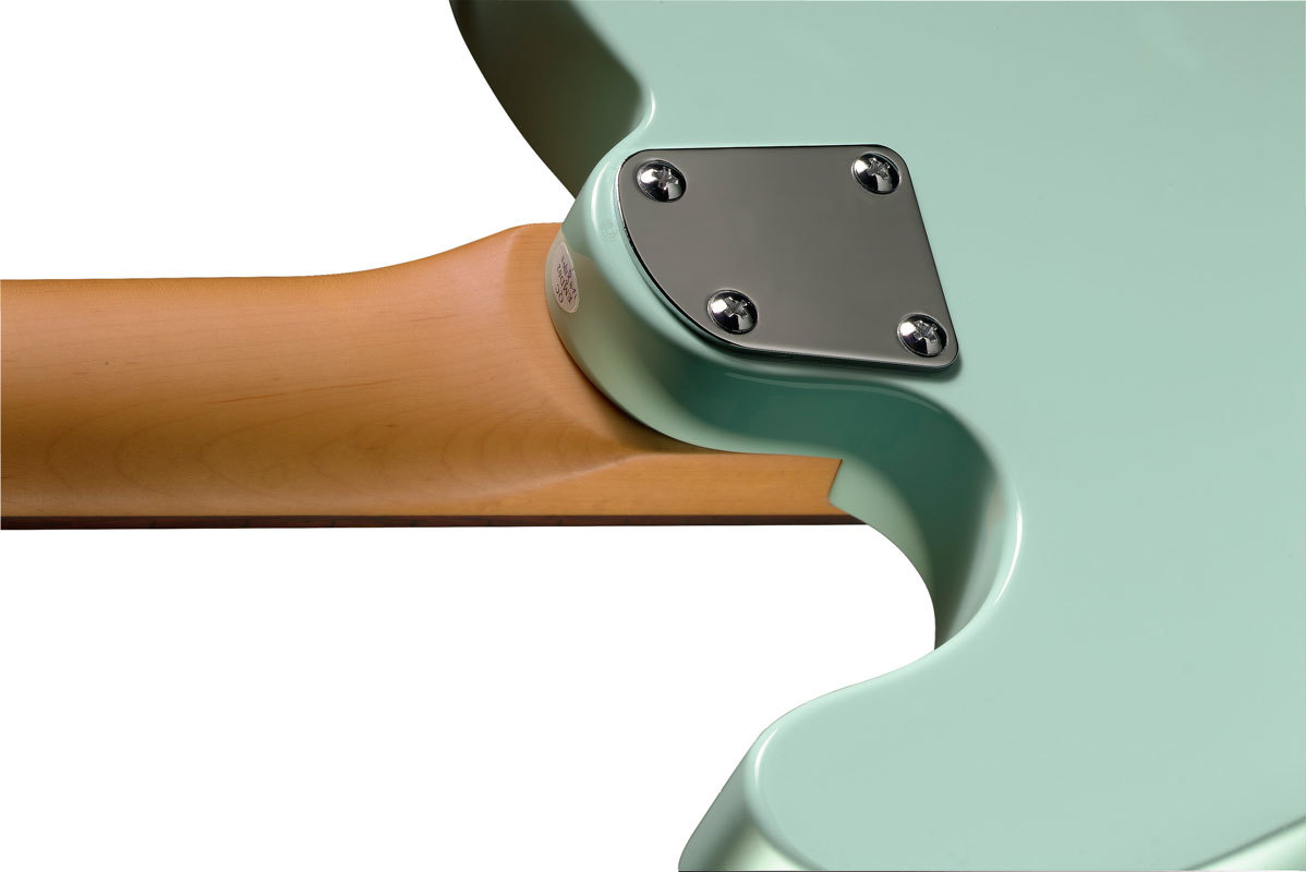 Электрогитара обладает двумя звукоснимателями-синглами, Бридж выполнен в Т-стиле, колки никелевые, литые. Верхний порожек – костяной, выполнен из материала NuBone; это разновидность материала TUSQ с лучшими тональными характеристиками. На гитару установлен глянцевый пикгард бежевого цвета.