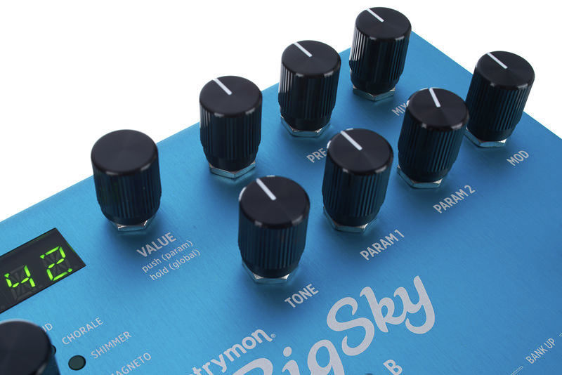 Кроме того, Strymon использовали свой опыт в сфере эффектов задержки и модуляции, благодаря чему в BigSky вас ждут инновационные связки реверберации с модуляционными эффектами, мультиголовочными эхо и разнообразными фильтрами. Основная задумка состояла в том, чтобы взять каждый из существующих аспектов реверберации и перенести его на уровень 21-го века. А Strymon, как известно, умеет воплощать в жизнь свои задумки.