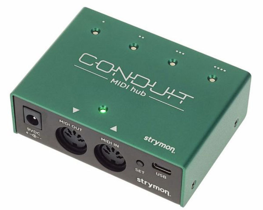 Strymon Conduit MIDI Box - это первоклассный, легко настраиваемый, сверхнадежный MIDI-интерфейс, который будет работать практически со всеми имеющимися у вас четвертьдюймовыми MIDI-педалями эффектов, а также обеспечивает лучшее USB-подключение к компьютеру для любой TRS MIDI-педали.