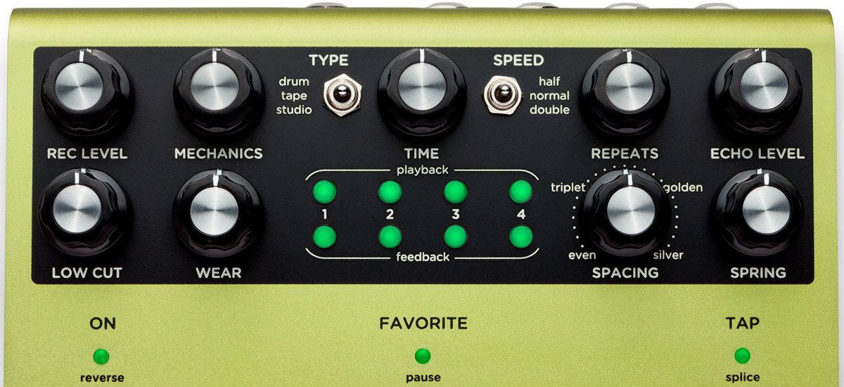 - Дилей с 3-мя различными магнитными дилеями (drum, tape, studio), пружинная реверберация и лупер