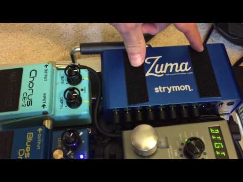 Начнём с того, что на странице с описанием Zuma на сайте производителя приведена фотография, на которой эта самая Zuma предоставляет питание ДЕВЯТИ дилэям Strymon Timeline. Думаю, это лучшая реклама для блока питания.