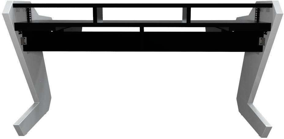 Форма стола и его современный гладкий дизайн говорят о внимании, уделяемом фирмой эргономике и эстетической стороне студийной мебели. Черная версия парты серии Beat (ножки белые) спроектирована для максимального облегчения работы любителя звукозаписи или профессионального продюсера домашней студии.