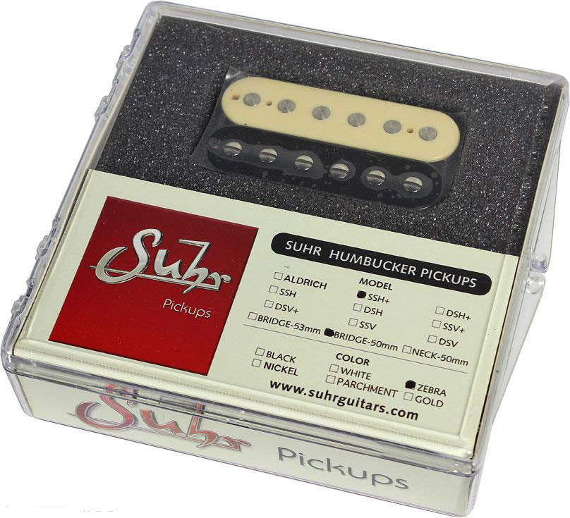 Suhr SSH Plus Bridge Zebra 50, гитарный звукосниматель с одним рядом винтовых полюсов Humbucker, Bridge, расстояние 1- 6 струна 50 мм, Zebra