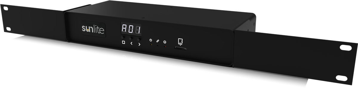 Благодаря доступным 3072 DMX-каналам (с расширяемым до 4096) с 4 разъемами 3-контактными XLR и 2шт. 5-контактным, интерфейс способен управлять большим количеством световых приборов. Для удобства установки в рэковую стойку, в комплект поставки входят специальные крепления (уши) Занимающий совсем немного места, в отличии от других консолей, SUNLITE-RC будет удобным для работы в ночные клубы, рестораны, концертные залы, а его металлический корпус защитит интерфейс при транспортировке, например, на выездные мероприятия. SUNLITE-RC позволяет использовать все режимы программного обеспечения Sunlite Suite 3, в том числе, триггеры времени, мультимедиа (АУДИО и ВИДЕО), синхронизация Midi-кода времени. В результате, нет необходимости приобретать какие-либо расширения через приложение SUT. DMX-интерфейс поставляется с автономной памятью и слотом для microSD, и может запускать запрограммированные шоу в автономном режиме без использования компьютера. Эта функция идеально подходит для небольших шоу, или для управления архитектурным освещением. Кроме того, внутренняя память может использоваться как резервное копирование в случае сбоя компьютера.