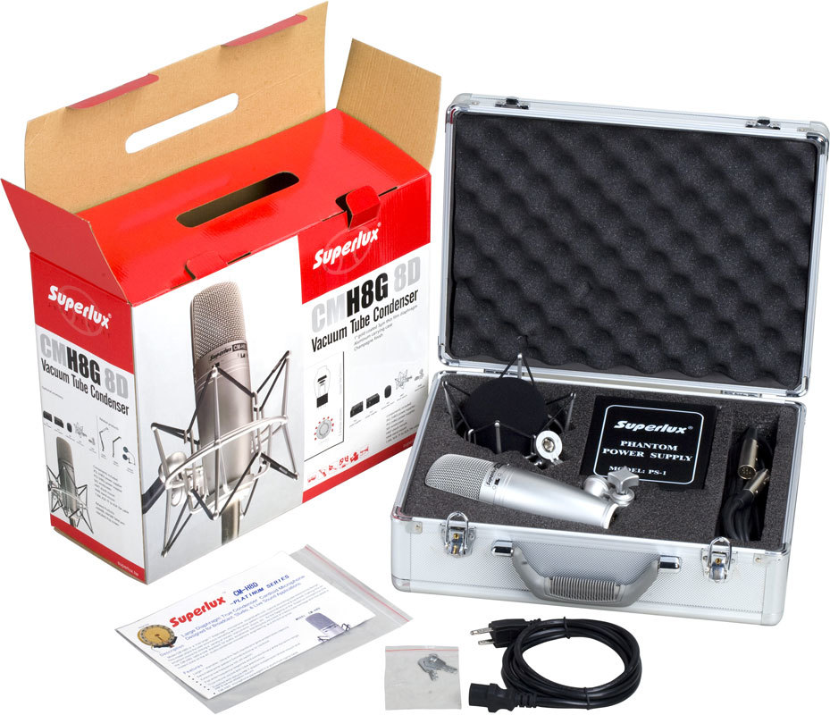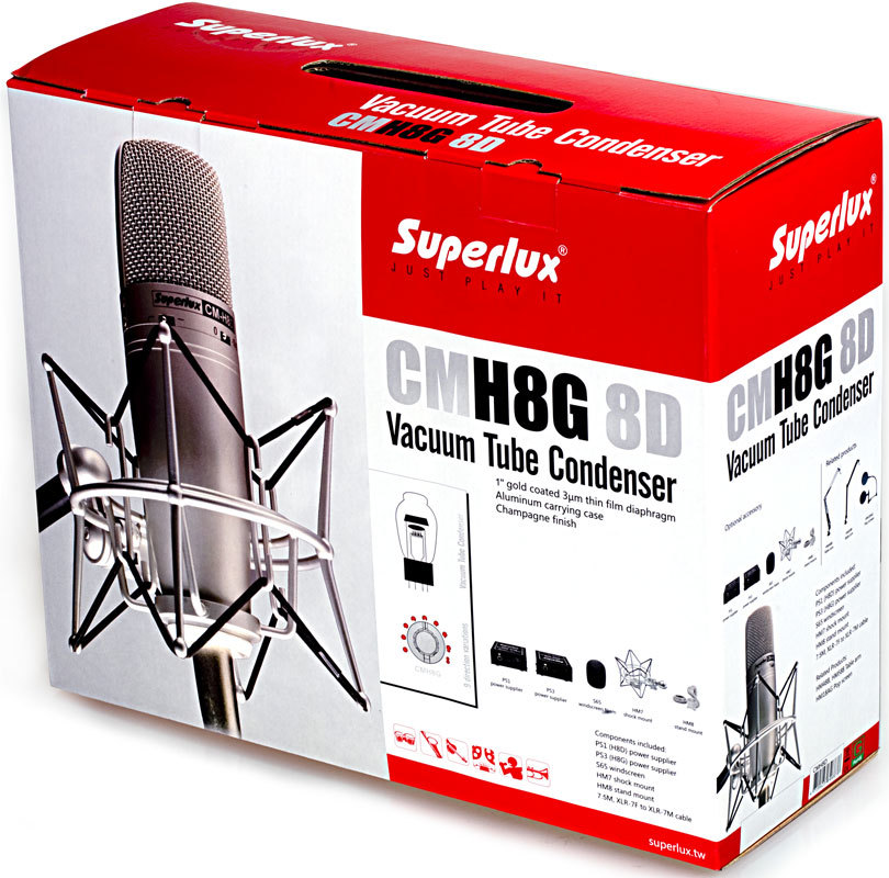 Superlux CMH8D — ламповый конденсаторный микрофон с большой диафрагмой. Микрофон обладает уникальной конструкцией лампового усилителя, что придает звучанию исключительно теплый и точный характер. Эта модель как нельзя лучше подойдет для студийного использования. Этот микрофон просто создан для истинных знатоков и ценителей лампового звучания.