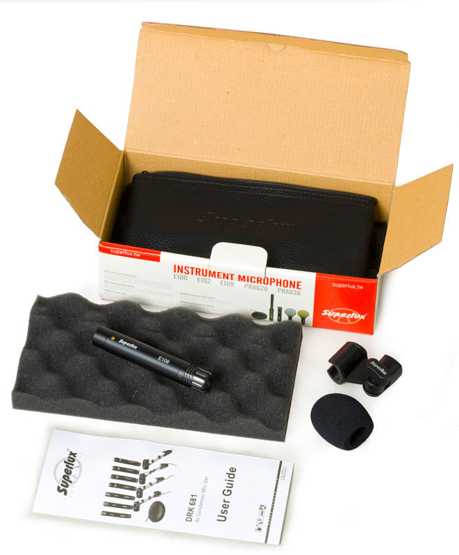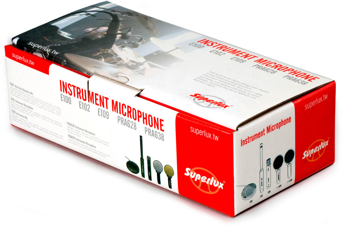 Superlux E109 - инструментальный конденсаторный микрофон со сменными капсюлями. Больше всего он подойдет для инструментов среднего и высокого частотного диапазона, например, хай-хетов, тарелок, гитары, скрипки и др.
