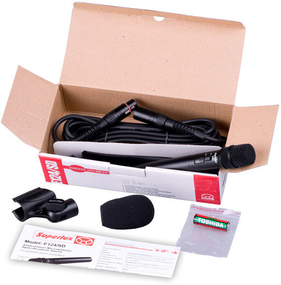 E124D-XLR - это однонаправленный электретный конденсаторный микрофон, частотный диапазон которого специально подобран под требования профессиональных музыкантов и аудиоинженеров для работы как на сцене, так и в студии звукозаписи. Питается от батарейки 1,5 В или фантомноного питания. Данный микрофон лучше всего подходит для подзвучки музыкальных инструментов, звукоусилительных систем, студийной звукозаписи или телевизионных интервью. В комплект входит 6-метровый микрофонный кабель XLR3F-XLR3M.