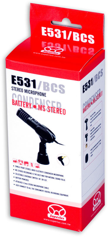 Superlux E531B - это стерео микрофон с расположением капсюлей в конфигурации Mid-Side. Он позволяет с легкостью осуществлять стерео запись и захватывать реалистичную пространственную звуковую картину во время мероприятий. Он также позволяет регулировать ширину стереополя, переключаясь между 90- и 120-градусной конфигурациями. 90-градусная конфигурация позволяет захватывать чистую и сфокусированную звуковую картину, когда источник звука занимает узкое пространство. 120-градусная конфигурация отлично подойдет для записи выступления группы, хора и больших сцен, которые занимают широкое пространство.