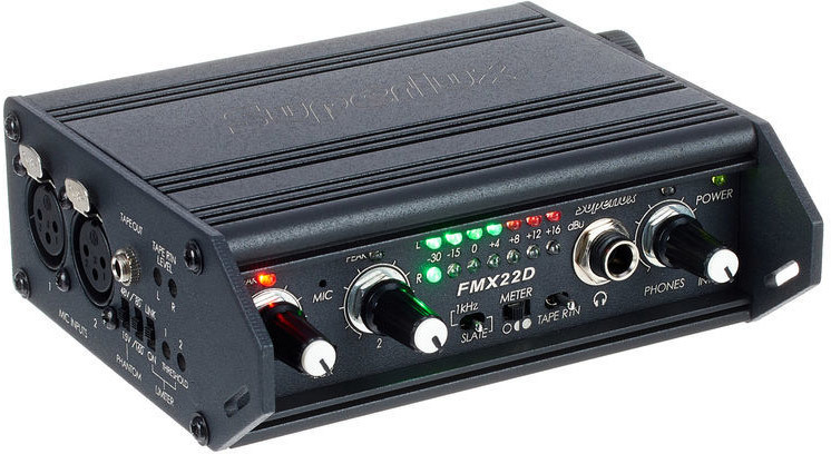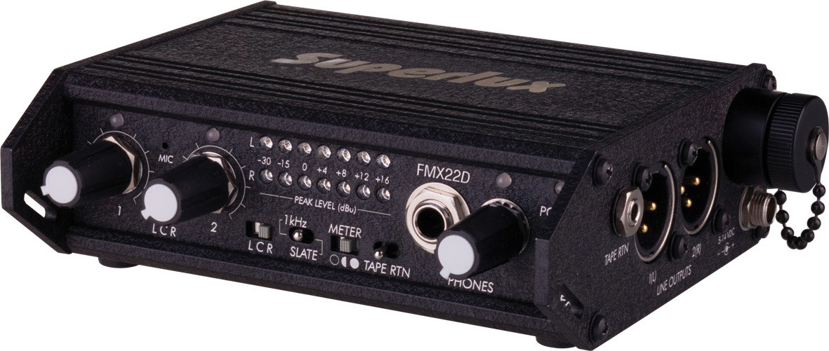 The FMX22D представляет собой двухканальный микшер студийного качества для удаленного или полевого микширования треков, используемых в видео, фильмах, вещании или профессиональной звукозаписи.