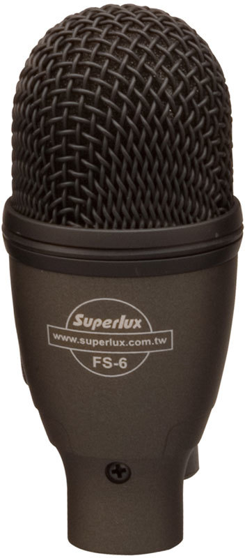 Микрофон Superlux FS6 с клипсой предназначен специально для подзвучки малого барабана. Благодаря его широкому динамическому диапазону, высокому максимальному уровню звукового давления, он гарантирует низкий уровень искажений и отлично подойдет для использования с малым барабаном и духовыми инструментами.