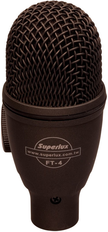 Superlux FT4 - это динамический мирофон, специально созданный для подзвучки томов. Благодаря его широкому динамическому диапазону, высокому максимальному уровню звукового давления, он гарантирует низкий уровень искажений и отлично подойдет для инструментов средне-низкого частотного диапазона.