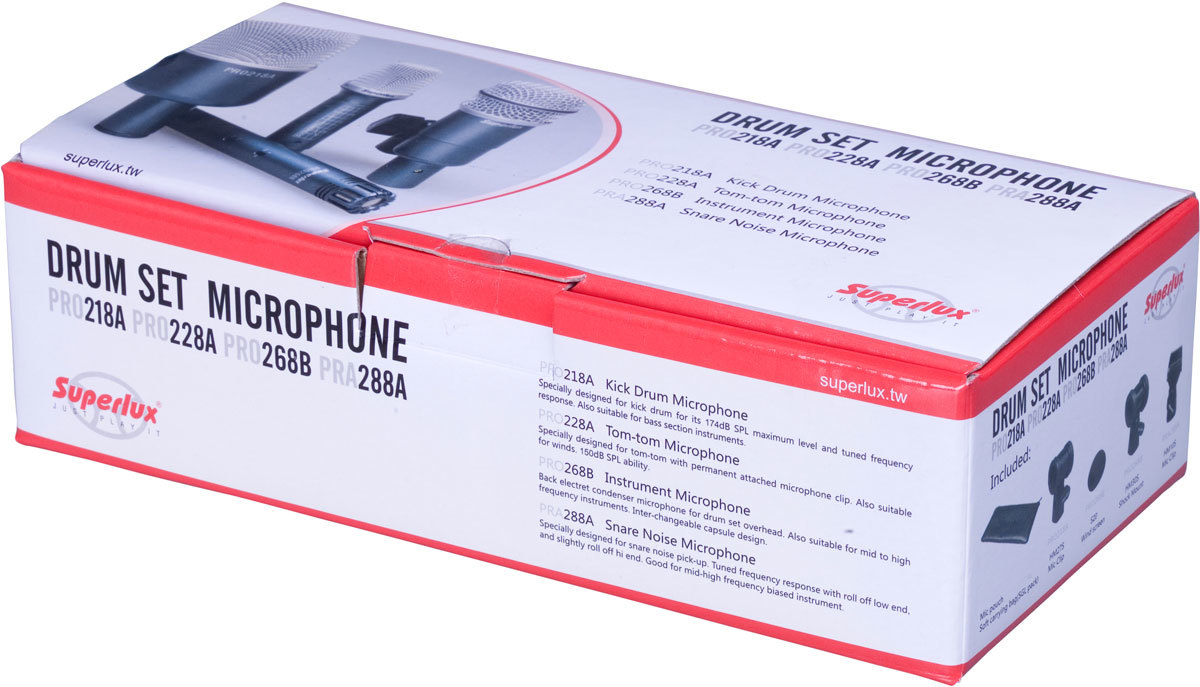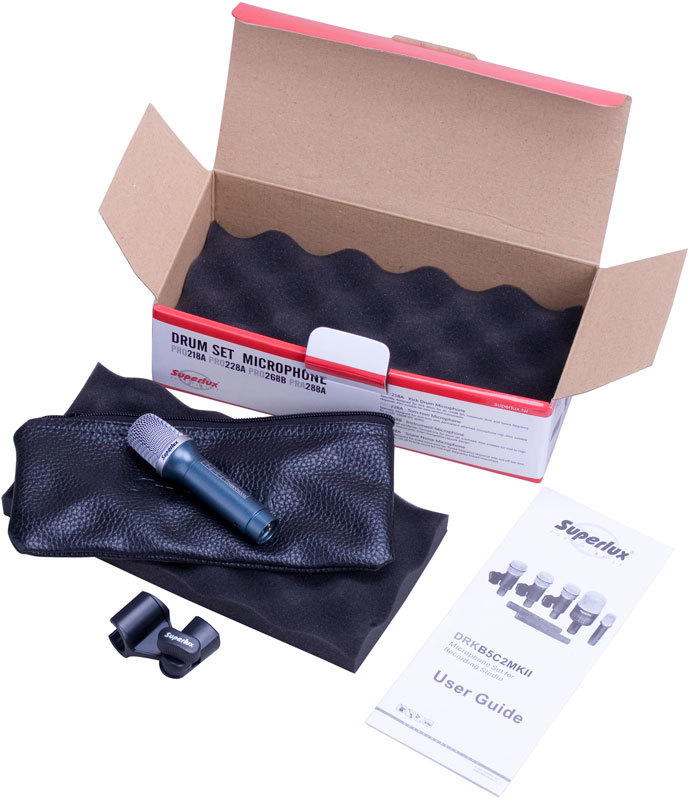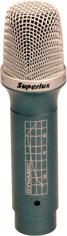 Superlux PRA228A - динамический микрофон для подзвучки малого барабана. Специально скорректированная АЧХ и кардиоидная направленность делает его идеальным выбором для подзвучки инструментов средне-высокого частотного диапазона.
