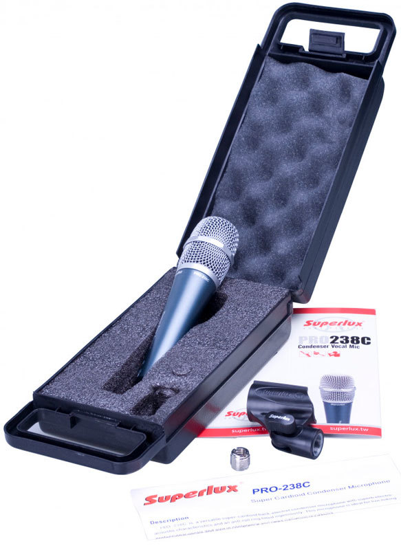 Superlux PRO238C - это конденсаторный микрофон с кардиоидной направленностью и улучшенными электроакустическими характеристиками. Особый дизайн микрофона предотвращает его скатывание по наклонной поверхности. PRO238C идеально подойдет для использования на сцене, подзвучки инструментов, а также для MIDI и DAW решений. Благодаря низкому уровню шума, он также используется для профессиональной записи вокала, а также во время конференций и интервью.