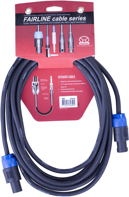 Superlux SFS5SS - ультрагибкий колоночный кабель, длина 5 м, разъемы спикон. Калибр проводника AWG14, площадь поперечного сечения 2,08 кв.мм.