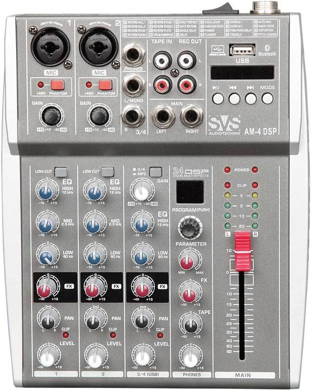 SVS Audiotechnik AM-4 DSP Микшерный пульт аналоговый, 4-канальный, 24 DSP эффекта, USB интерфейс