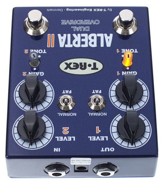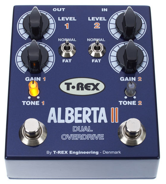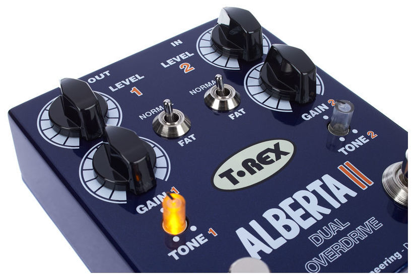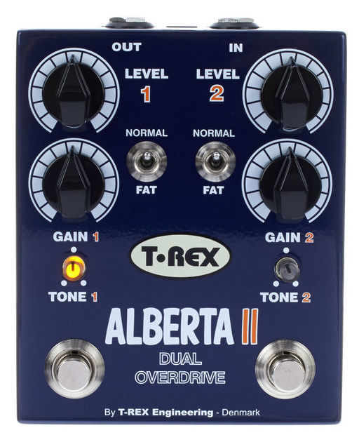 Alberta II от T-Rex – двухканальная гитарная педаль-лоу-гейн-овердрайв, фактически две обычных Alberta в одном корпусе.