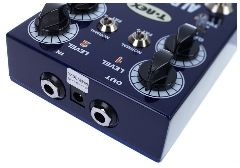 Двухканальные педали перегруза – это, несомненно, тренд. Наличие двух каналов или, например, буста, активируемого отдельной кнопкой, удовлетворяет все нужны многих гитаристов – ведь с такой конфигурацией у вас есть чистый звук, перегруз для ритма на одном канале и перегруз для соло на другом. Именно из этих соображений и спроектирована AlbertaII. В корпусе приятного синего цвета находятся два овердрайва T-RexAlberta, каждый – со своим набором настроек.
