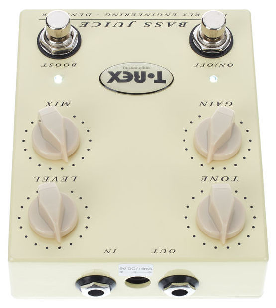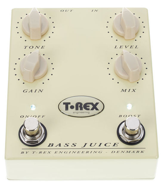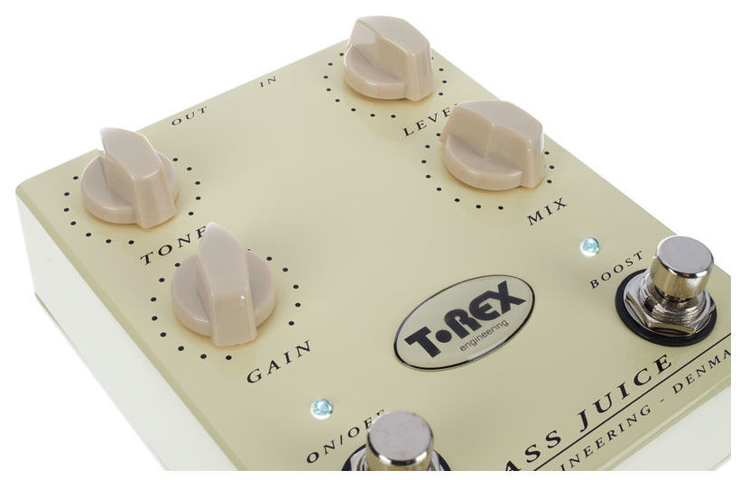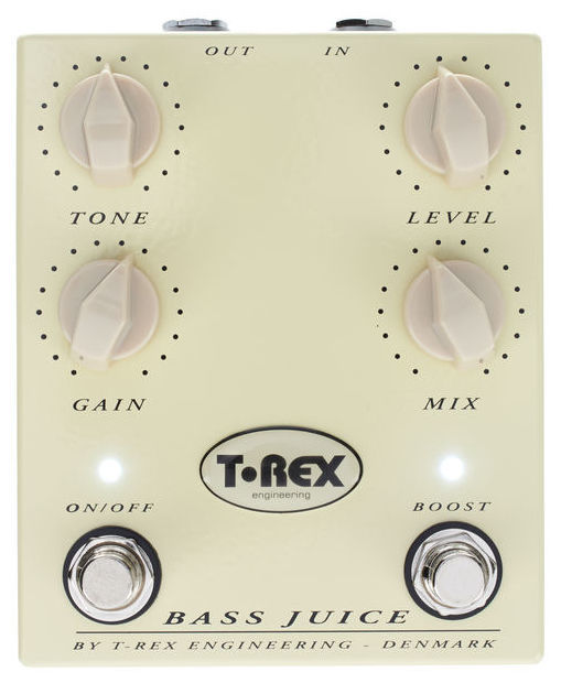 T-Rex Bass Juice – педаль перегруза для бас-гитары с встроенным бустом, который активируется отдельной кнопкой.