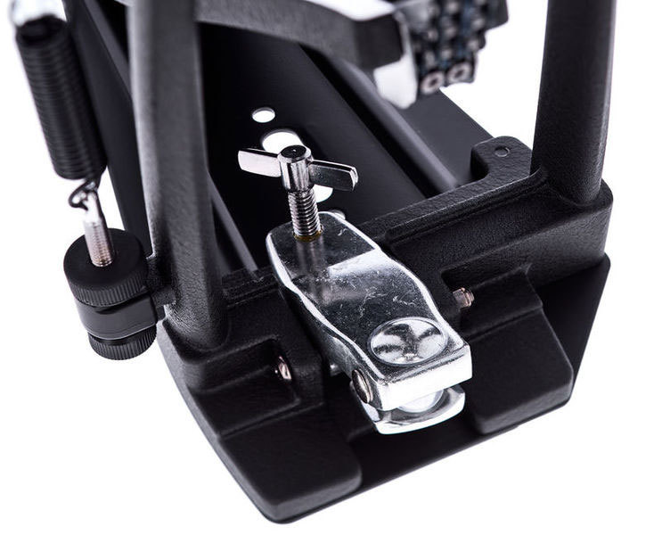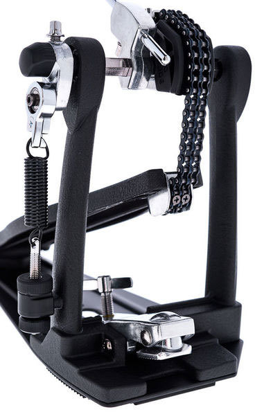 Используемая в конструкции данной модели двойная цепь – аналогична моделям 900 серии, благодаря ей удалось добиться максимально плавного и четкого хода в любой ситуации. За счет использования специального винта натяжения, имеющего форму полумесяца, удалось исключить скручивание пружины и гарантировать плавность хода. Педаль Iron Cobra HP600D отличается также и стильным внешним видом.
