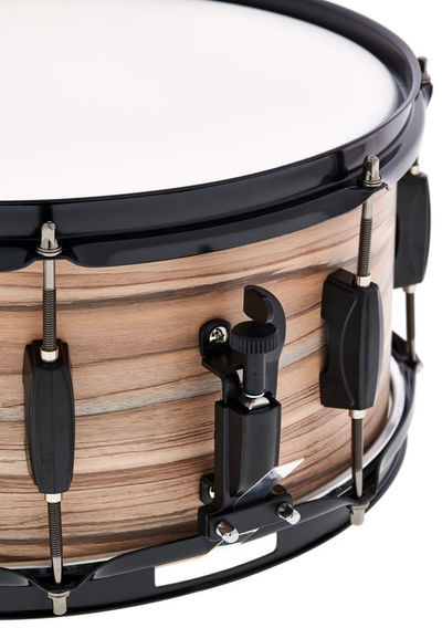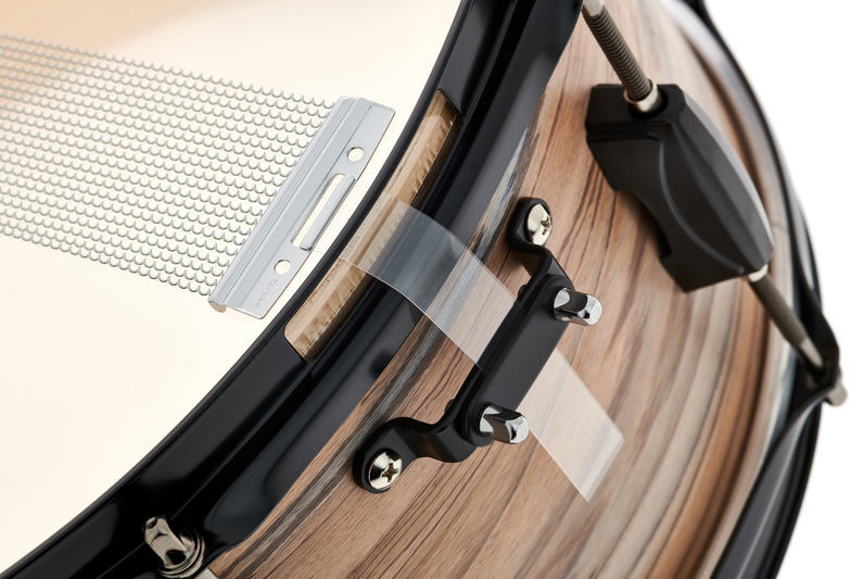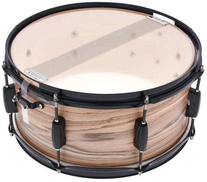 Возможность использовать барабан как дополнительную перкуссию. Размер барабана составляет 6.5х14". Цвет корпуса Natural Zebrawood Wrap. Материал - 8-слойный тополь, 8 мм. 8-луночный тройной фланцевый обруч 1,6 мм. Стрейнер с 20 струнами.