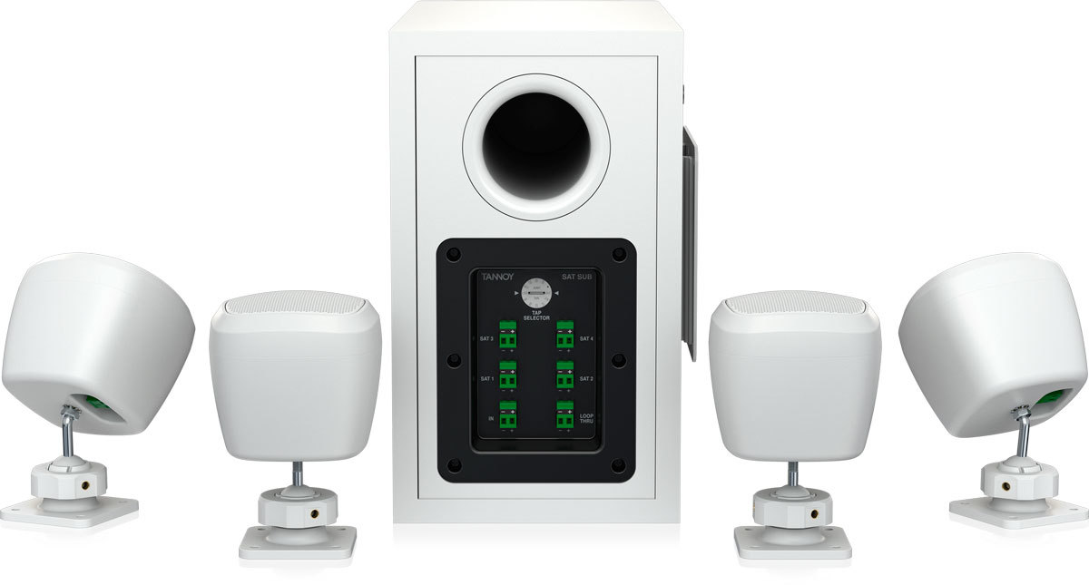 Tannoy SAT SUB 4PACK-WH комплект настенный сабвуфер 6,5" и 4 сателлита 2,5", встроенный кроссовер, 70 / 100 B - 80 Вт, Prog 120 Вт / 8 Ом, 32 Гц - 20 кГц, белый
