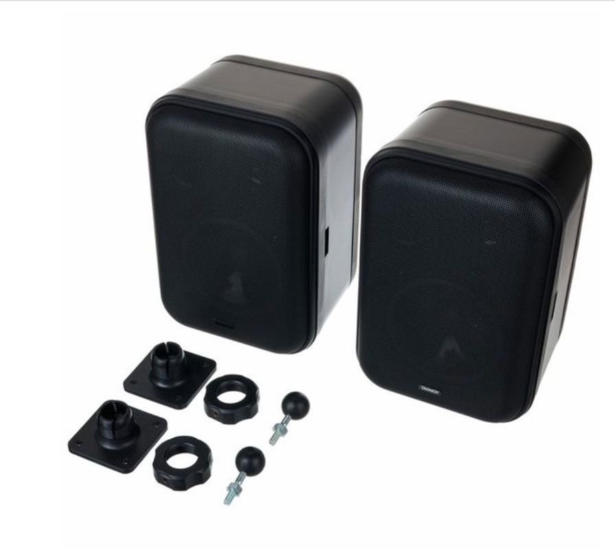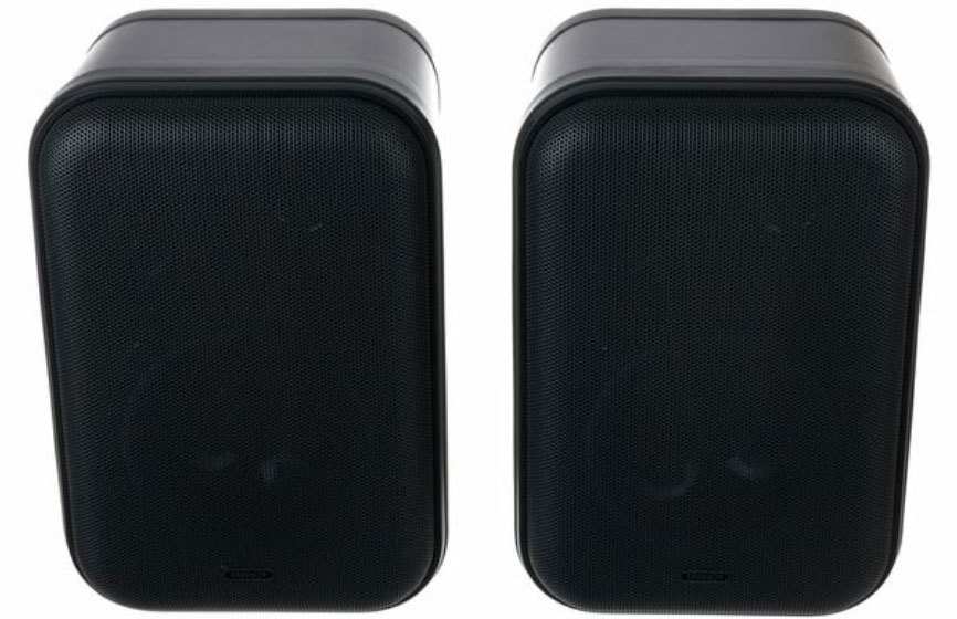 Пара пассивных мониторов с возможностью настенного крепления. Шарнирные крепления входят в комплект поставки. Для работы рекомендуется использовать усилитель мощностью 50 Вт на нагрузке 4 ома. Цвет корпуса чёрный.
