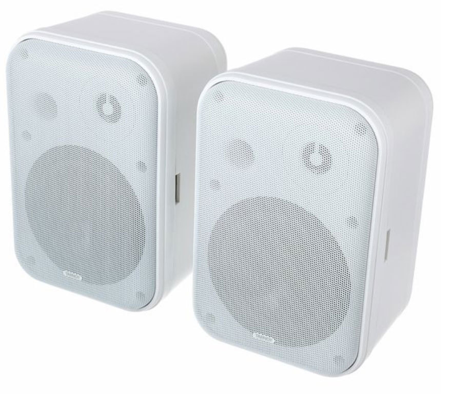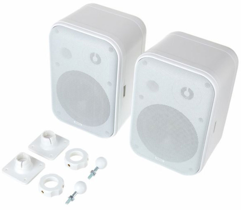 Пара пассивных мониторов с возможностью настенного крепления. Шарнирные крепления входят в комплект поставки. Для работы рекомендуется использовать усилитель мощностью 50 Вт на нагрузке 4 ома. Цвет корпуса чёрный.