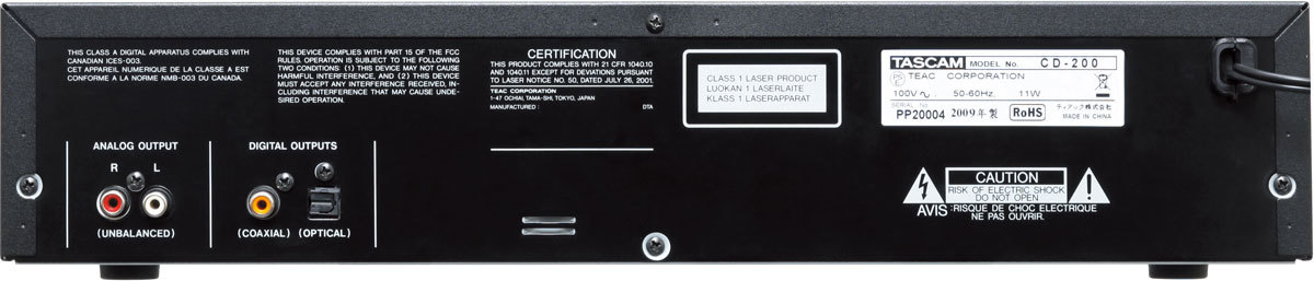 Tascam CD-200, так же как и CD-160, оснащен небалансными RCA разъемами, цифровым S/PDIF выходом, стерео выходом на наушники 1/4″.
