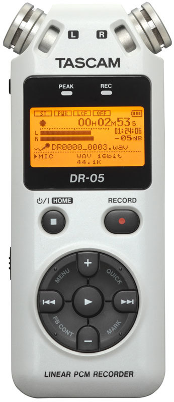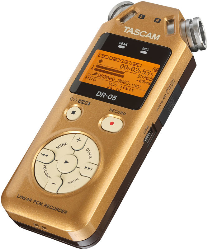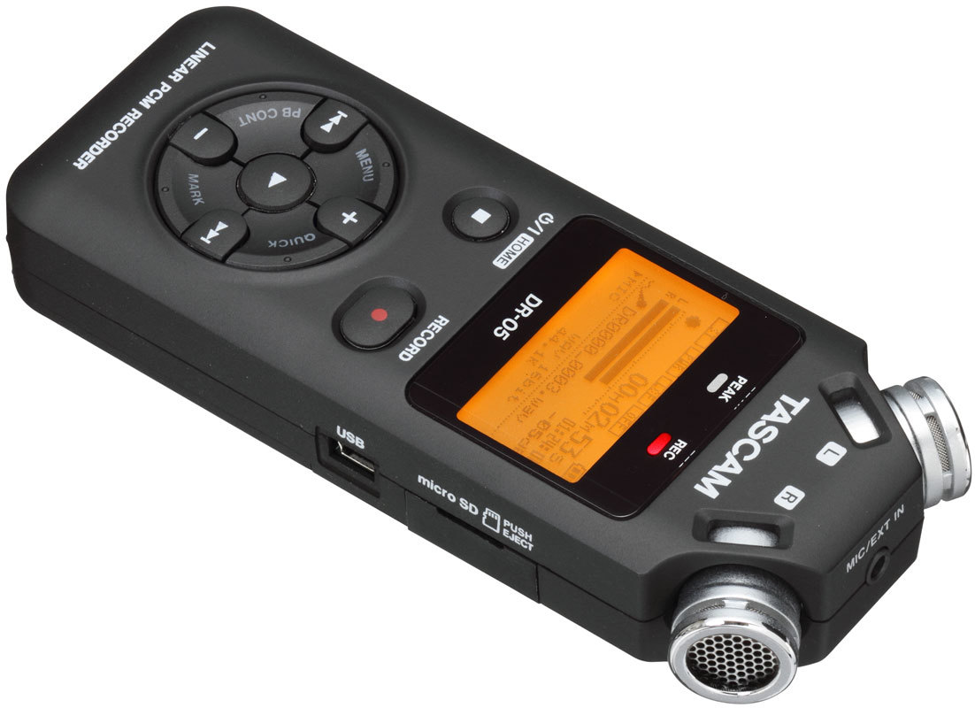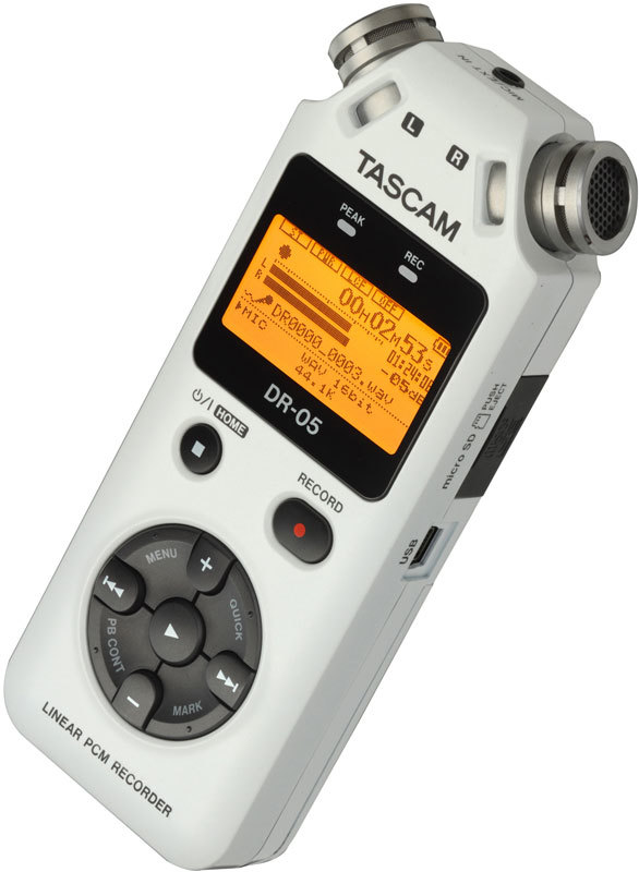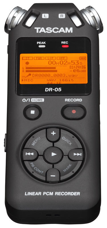 Портативный рекордер Tascam DR-05 оснащён парой стереофонических конденсаторных микрофонов, обладающих всенаправленной (Omnidirectional) диаграммой и возможностью записи высокого разрешения. Эти микрофоны позволяют осуществлять запись звуков, возникающих не только непосредственно перед микрофонами, но также и окружающий звук со всех направлений, что существенно расширяет область применения диктофона.