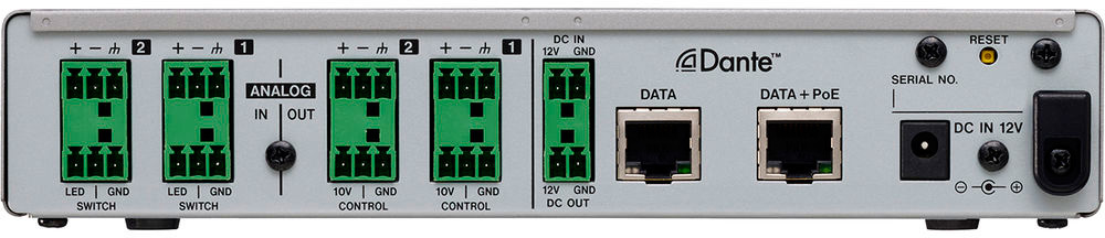 - Два разъема LAN для последовательного подключения к сети Dante