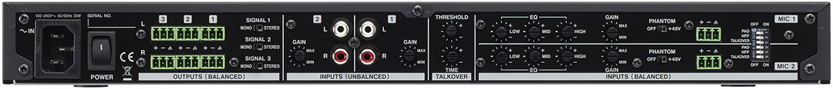 - Три зонных выхода с регуляторами уровня, индикаторами сигнала и перегрузки