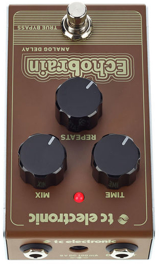 TC Electronic Echobrain Analog Delay – Педаль эффектов для электрогитары, эффект дилей, True Bypass, управление Time, Mix, Repeats, время задержки 40 ms – 300 ms, металлический корпус, питание от блока питания 9В или от батареи.
