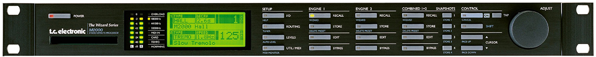 TC electronic M2000 студийный процессор эффектов реверберации, модуляции и динамической обработки. Аналоговые входы / выходы - XLR, цифровые - XLR-AES/EBU, RCA-SPDIF. 1U стандартного рэка. Вес 2,35 кг