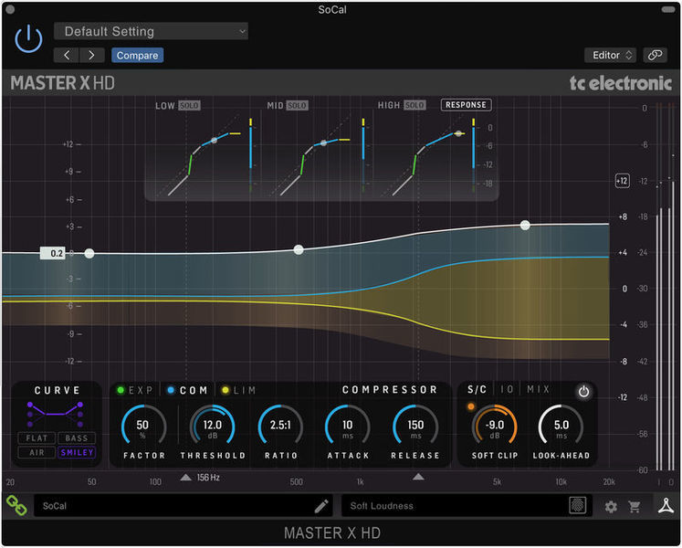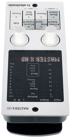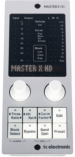 TC Electronic предлагает свой классический алгоритм многополосной компрессии для придания звучанию инструмента или микса большей плотности и насыщенности. Алгоритмы MASTER X HD-DT используются компанией в таких железных приборах как Finalizer 96 и System 6000. Плагин позволяет создавать сложные кривые компрессии для каждой частотной полосы. При этом на отдельных участках динамического диапазона сигнал может экспандироваться, а на других компрессироваться.