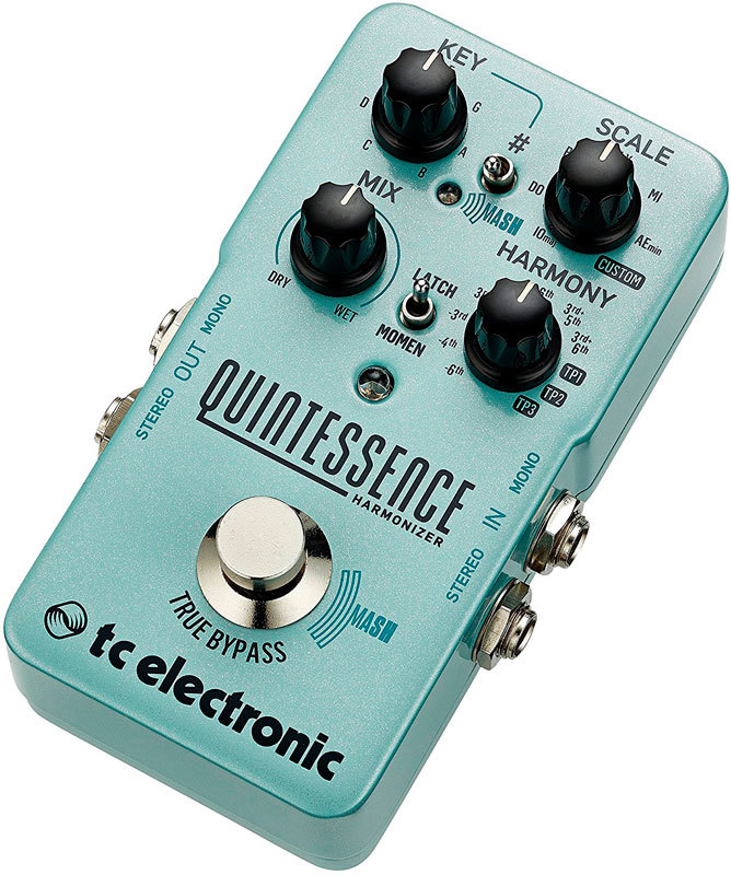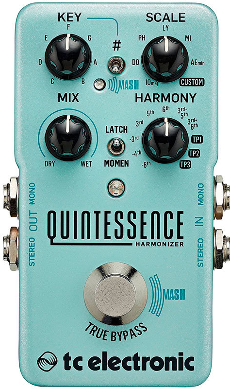TC Electronic Quintessence Harmony - двухполосная интеллектуальная педаль гармонайзер с новаторской технологией Mash и мощным TonePrint-редактированием. Инновационный футсвич Mash представляет собой чувствительный к нажатию котроллер. По умолчанию он отвечает за сдвиг высоты звучания обработанных нот к следующему интервалу на выбранной гамме, но в режиме TonePrint можно переназначить его для управления практически любым параметром педали. Например, на регулировку громкости чистого сигнала, переключение между двумя настройками гармоник или изменение гаммы.