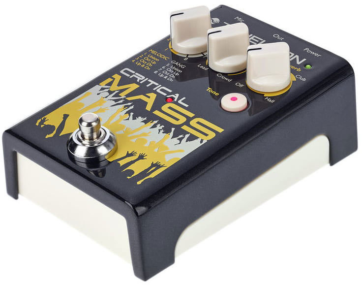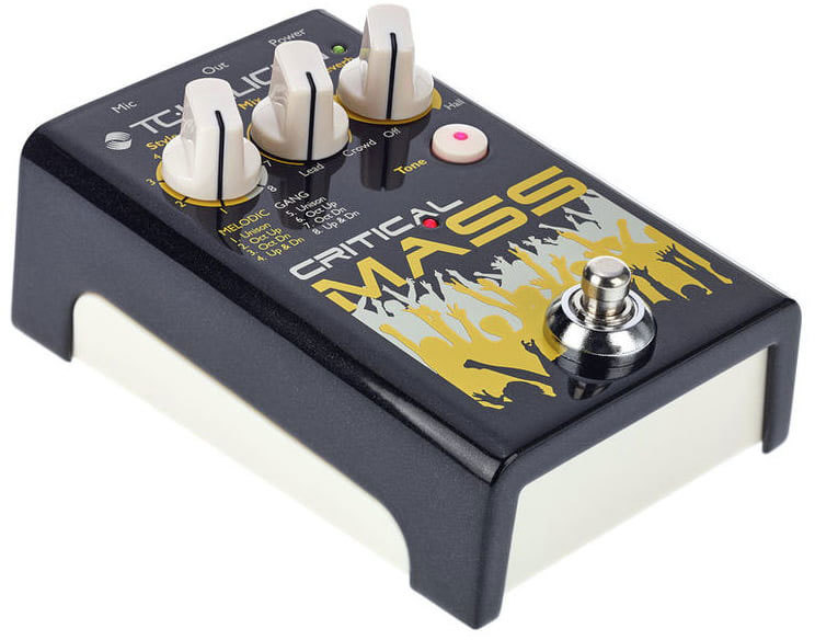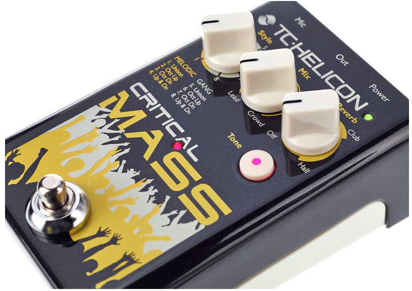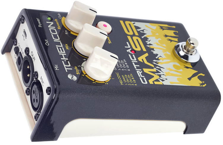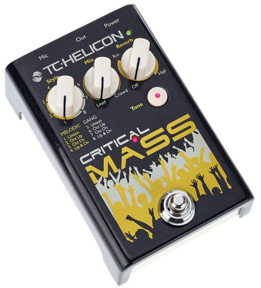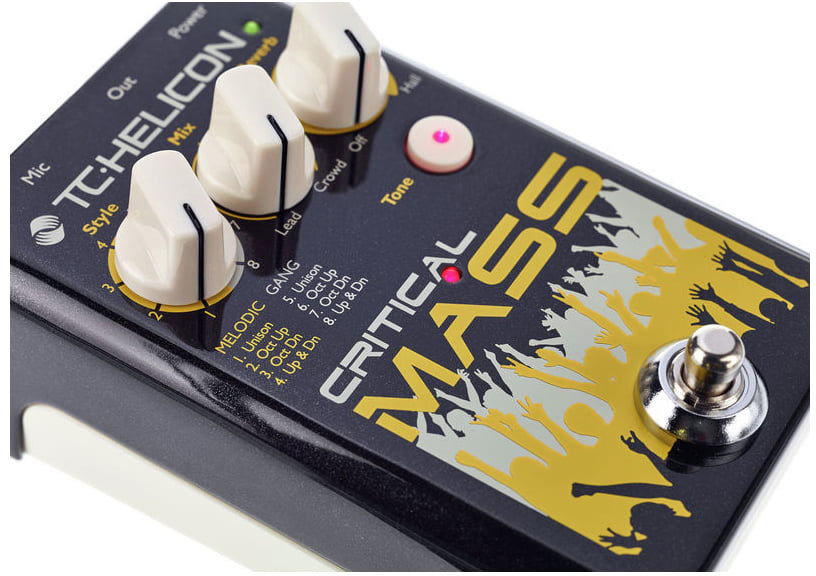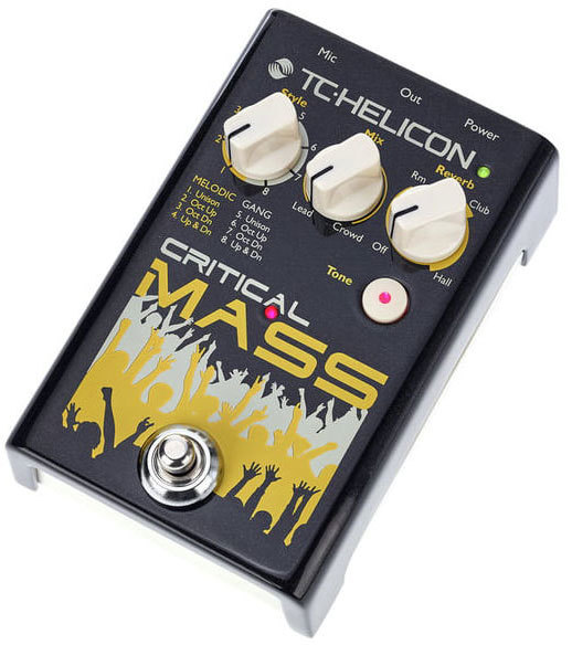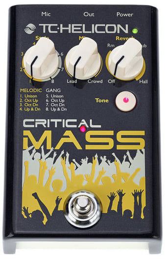 TC Helicon Critical Mass - вокальный процессор эффектов, простой в управлении и универсальный. Работает только с микрофоном, не нужна гитара, чтобы строить гармонии. Данная педаль добавляет октавы в ваш звук, создавая интересное унисонное звучание, делает звук мощнее, объёмнее.