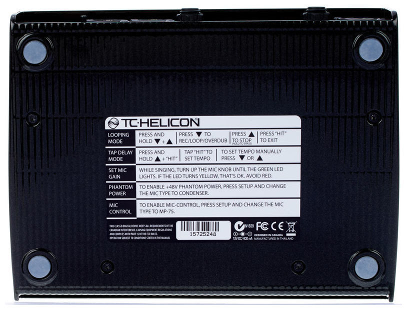 Процессором можно управлять на расстоянии. Если вы свободный вокалист, то вам придётся по душе возможность удалённого управления эффектами при помощи микрофона TC-Helicon MP-75, что позволяет во время исполнения не быть привязанным к педали и перемещаться по сцене как угодно. Если вы поющий гитарист, то вы оцените возможность расширения средств управления процессором при помощи выносного переключателя Switch-3, добавляющего к трём имеющимся на процессоре футсвичам ещё три, на которые могут быть назначены удобные вам функции, например, управление лупером или бустер, дилэй и Tap Tempo, в общем, всё для вашего удобства.