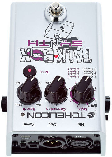 TC Helicon Talkbox Synth - педаль эффектов для вокала и гитары, 6 эффектов, 1 вход XLR, 1 выход XLR, гитарные In/Thru разъемы, фантомное питание 24В, USB. TC Helicon Talkbox Synth поставляет в ваш арсенал классические и новые звуки. С мгновенно узнаваемыми Talkbox и электронными звуками и эффектами вы можете добавлять уникальные вокалы во время исполнения.