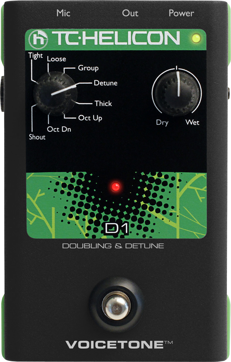 На VoiceTone D1 есть всего две основных ручки. Ручка выбора стиля имеет 8 положений и, соответственно, педаль имеет 8 пресетов, с помощью которых будет создана нужная бэк-вокальная партия: Group, Detune, Thick, Oct Up, Oct Dn, Shout, Loose, Tight. Можно создать ощущение, будто кто-то рядом поет в унисон, а если использовать октавер, будет впечатление, что вас поддерживает профессиональный исполнитель!