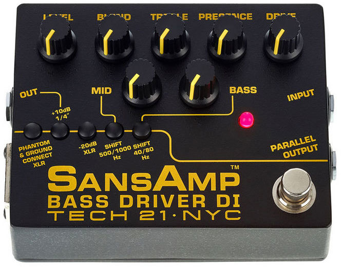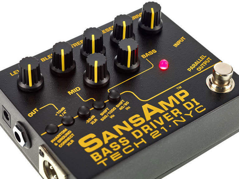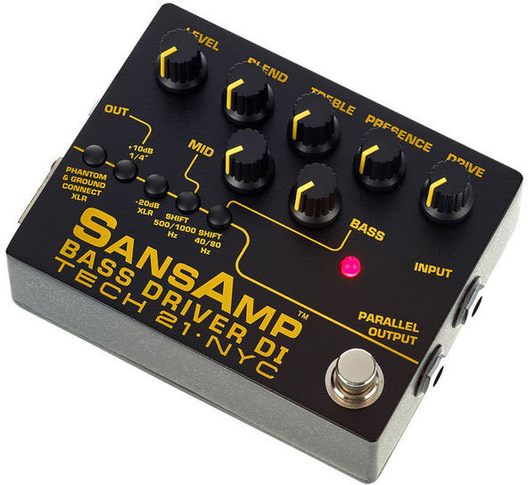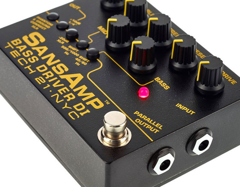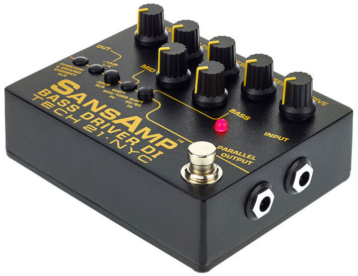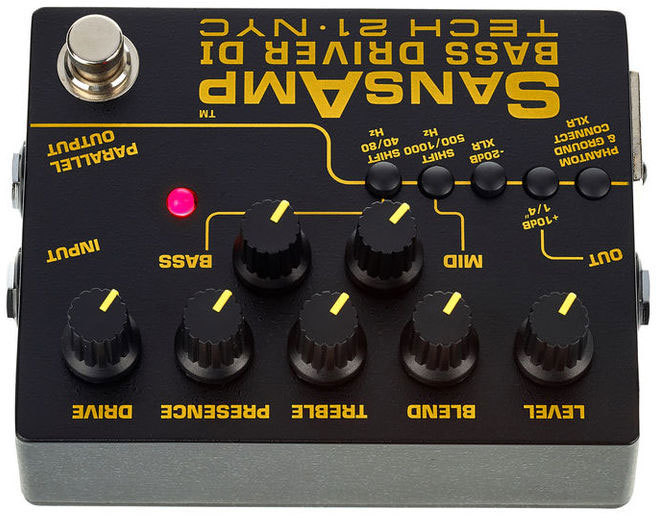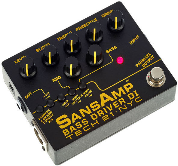 SansAmp Bass Driver DI — намного больше, чем просто direct box, он способен выдавать объёмное звучание точно как у ламповых винтажных усилителей, яркий современный слэп, грязный мощный перегруз, и всё что угодно, кроме этого. Три различных выхода из педали позволяют подключаться к усилителю, микшерному пульту или компьютеру, а также просто делают вашу цепочку эффектов еще более гибкой.