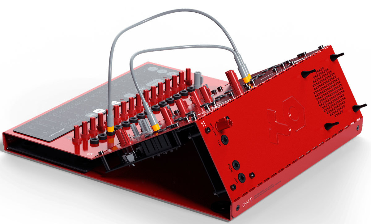 Teenage Engineering Pocket Operator Modular 170 совместим с Eurorack, т.е. обладает напряжением ±12 В и разъемами для патчинга 3,5 мм.