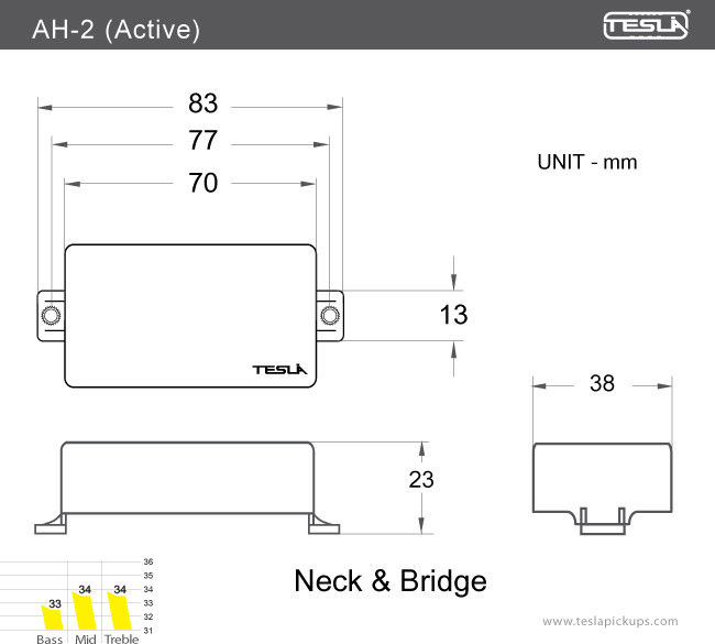 TESLA AH-2 – активный двухкатушечный звукосниматель, изготовленный с использованием магнитов Ceramic и эмалированной проволоки.