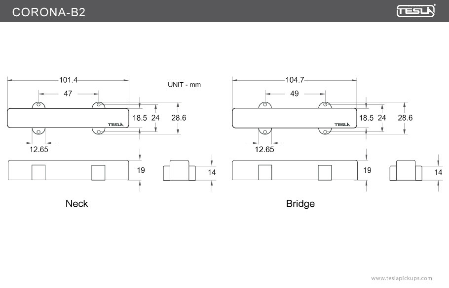 Датчики CORONA-B2 изготовлены с использованием медной проволоки с изоляцией из формвара, магнитов Alnico 5 и фибровых катушек. Также он оснащен 2-контактным кабелем, который открывает гитаристу большие возможности.